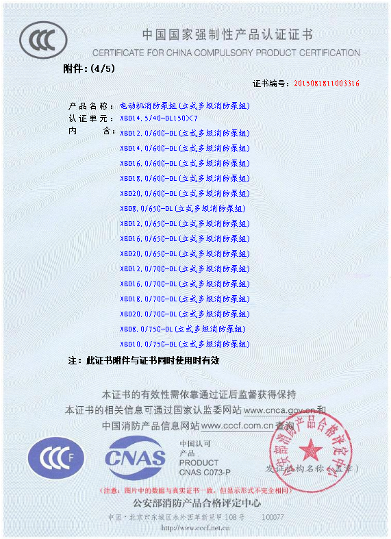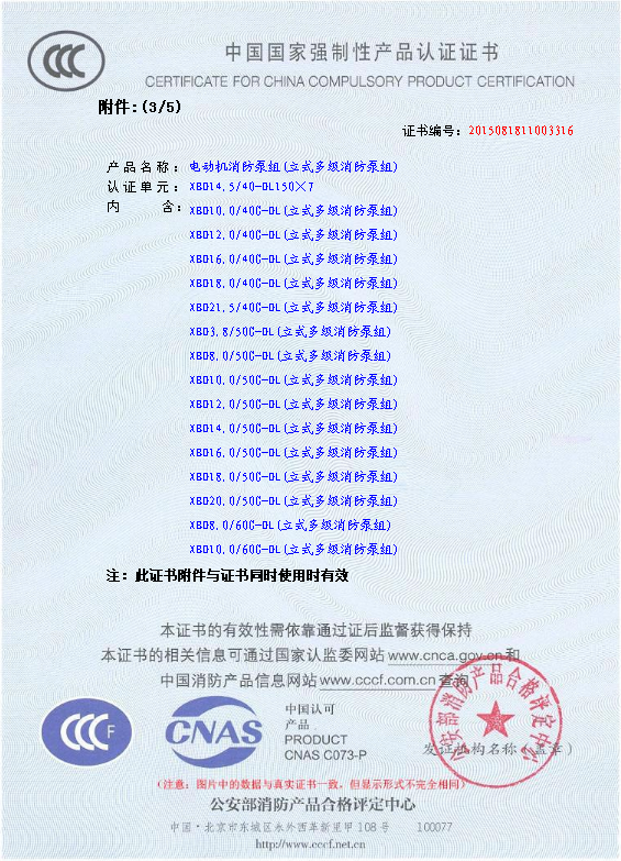 目前,龍巖市九龍水泵制造有限公司有二百多個(gè)型號(hào)的消防產(chǎn)品通過(guò)國(guó)家CCCF認(rèn)證,且證書(shū)已經(jīng)發(fā)至公司。本批獲證的產(chǎn)品分別是:立式多級(jí)消防泵組、多級(jí)泵流量50-75L/S,揚(yáng)程38-200m; 隨著新一批CCCF證書(shū)的到來(lái),九龍水泵消防產(chǎn)品的證書(shū)更加齊全,覆蓋的產(chǎn)品類(lèi)型也更廣,也是全體九龍人為生命工程制造好產(chǎn)品的體現(xiàn)。未來(lái),龍巖市九龍水泵制造有限公司將繼續(xù)依照國(guó)家消防規(guī)定,做好消防產(chǎn)品強(qiáng)制性認(rèn)證及管理工作,維護(hù)產(chǎn)品安全和社會(huì)安全。
